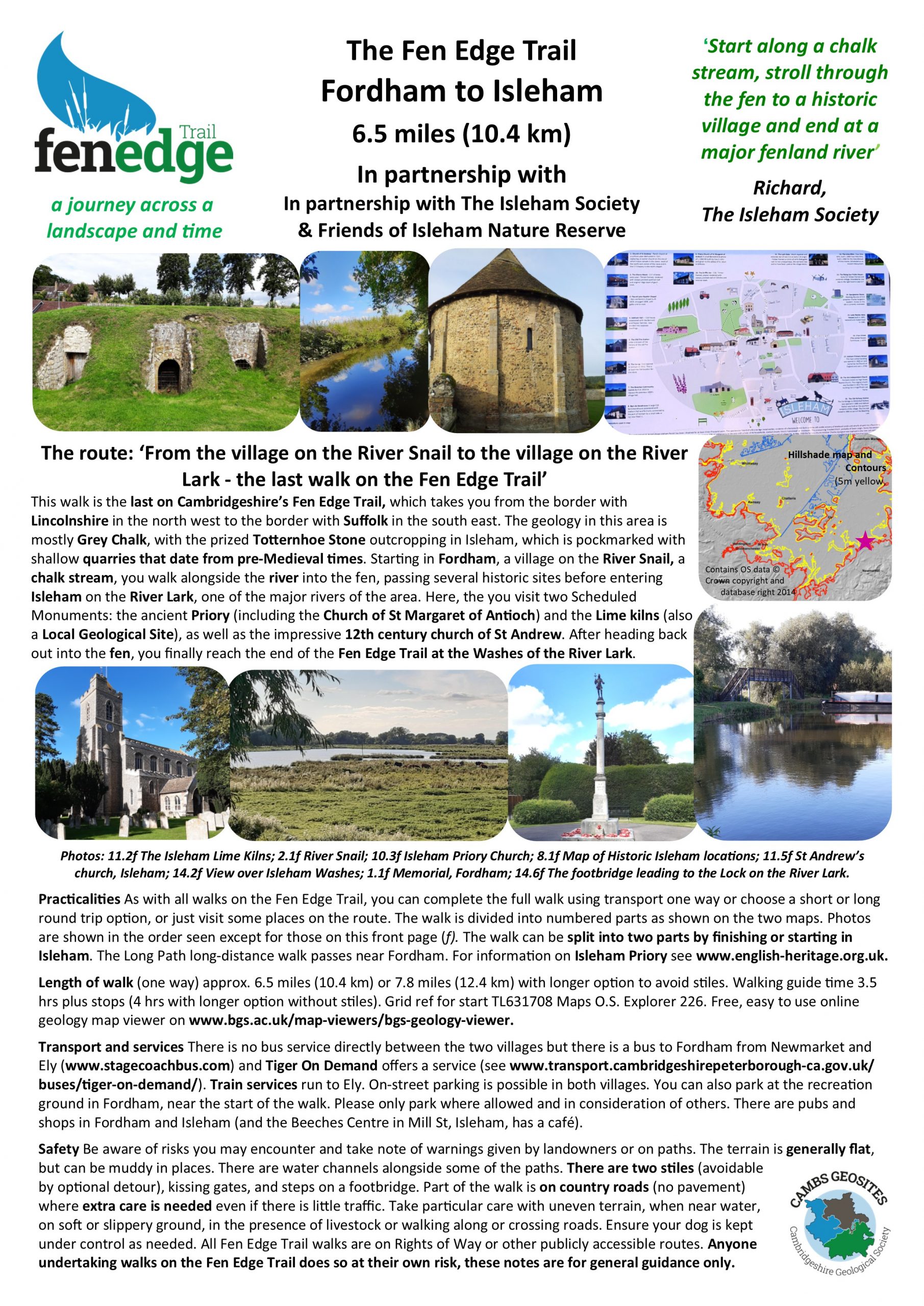Thanks to the Isleham Society for help in developing this walk. The Isleham Society encourages an interest in the village and its surroundings with a particular focus on history and heritage. The society also initiates and contributes to events which benefit the village community.